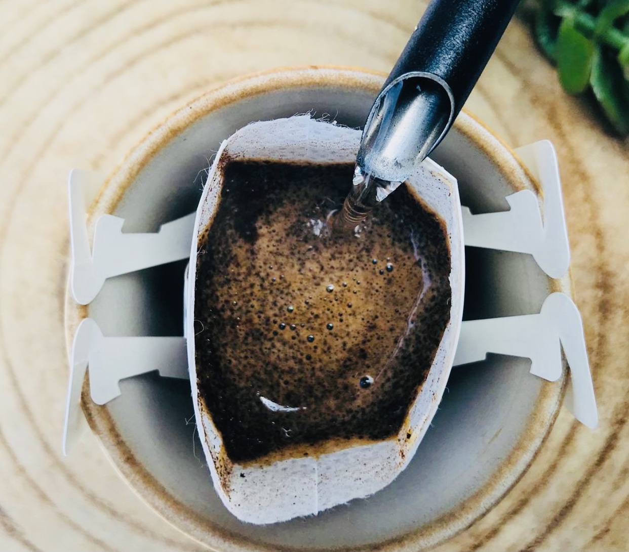 Pouch of 10 x 12g single serve ‘hook over cup’ pour over filters. Filters are loose within the pouch, the pouch is re-sealable.