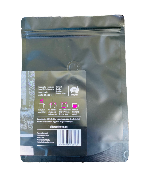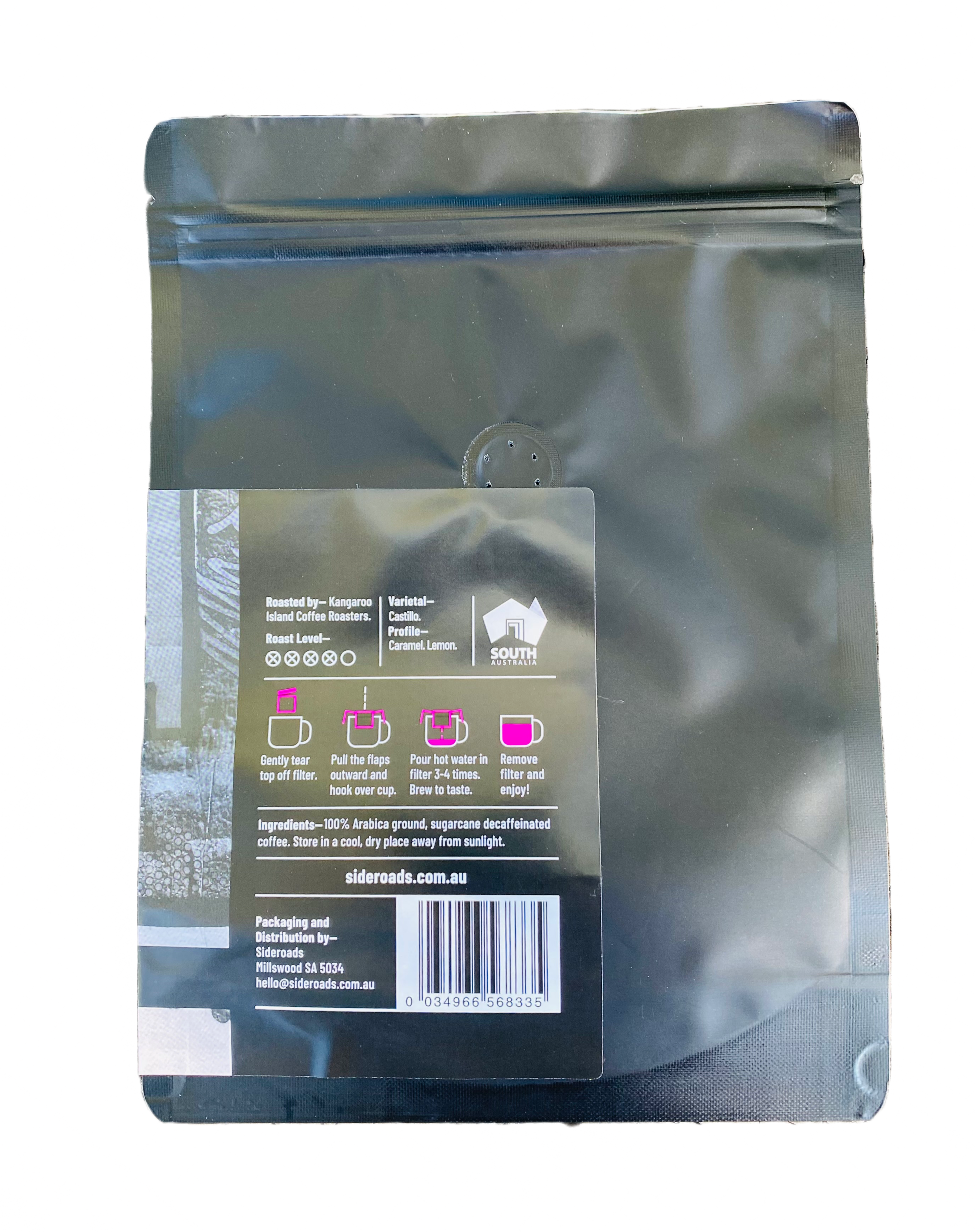 The beans have undergone a sugarcane decaf process which is commonly referred to as natural decaffeinated. The process uses ethyl acetate derived from sugarcane to dissolve the caffeine in the coffee beans. It’s the amazing flavours that remain, not the caffeine!