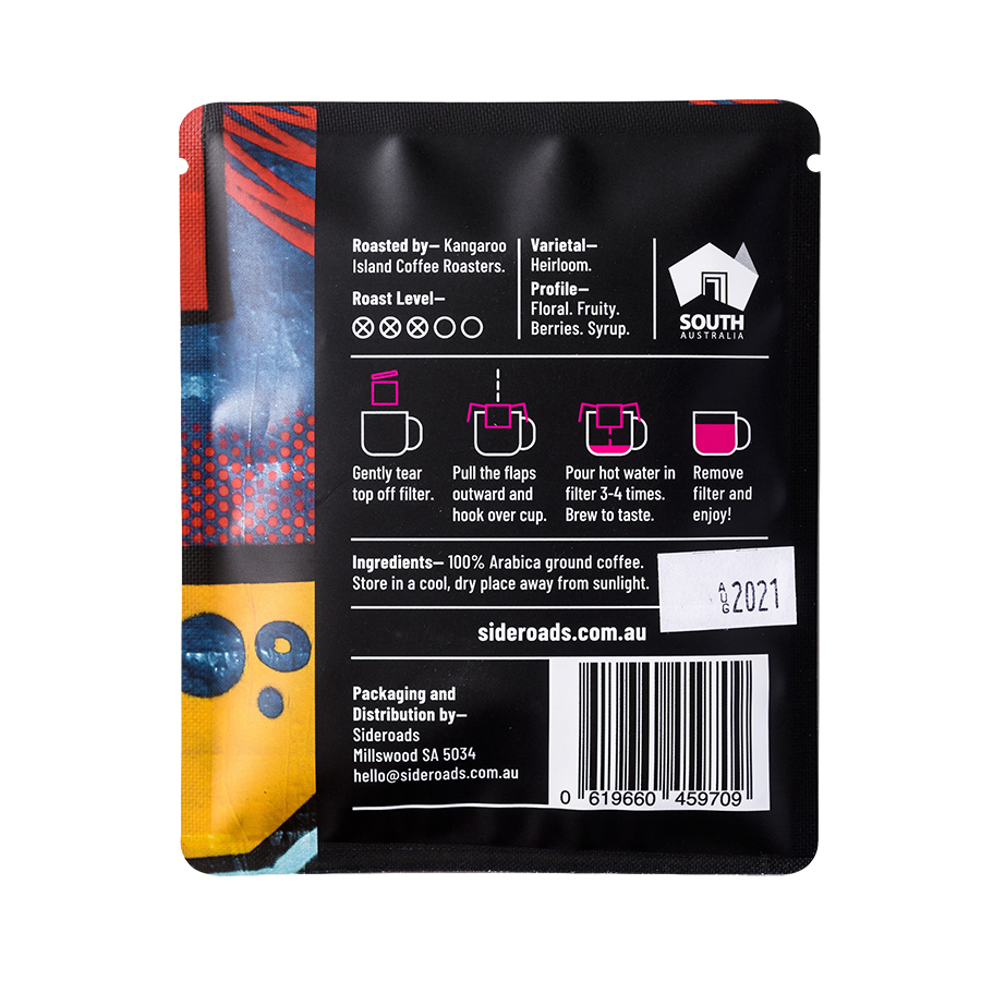 Roasted on magical Kangaroo Island. This award winning Ethiopian Yirgacheffe coffee is floral and fruity. A flowerbomb!